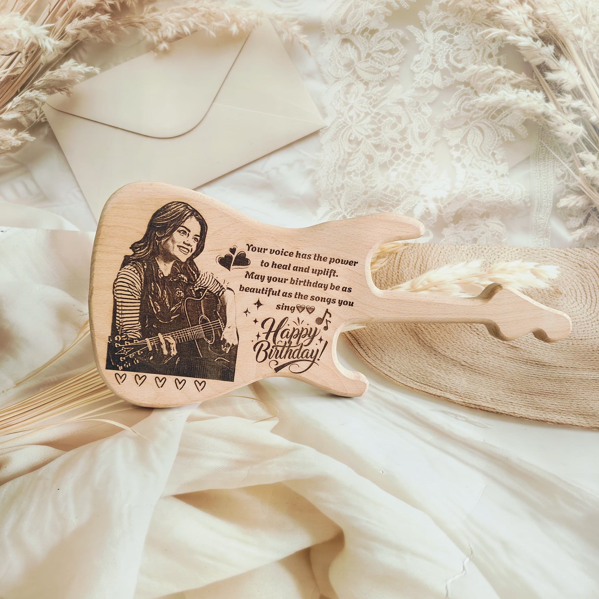 Personalized Engraved Guitar Shaped Wooden Photo Frame |Plaque