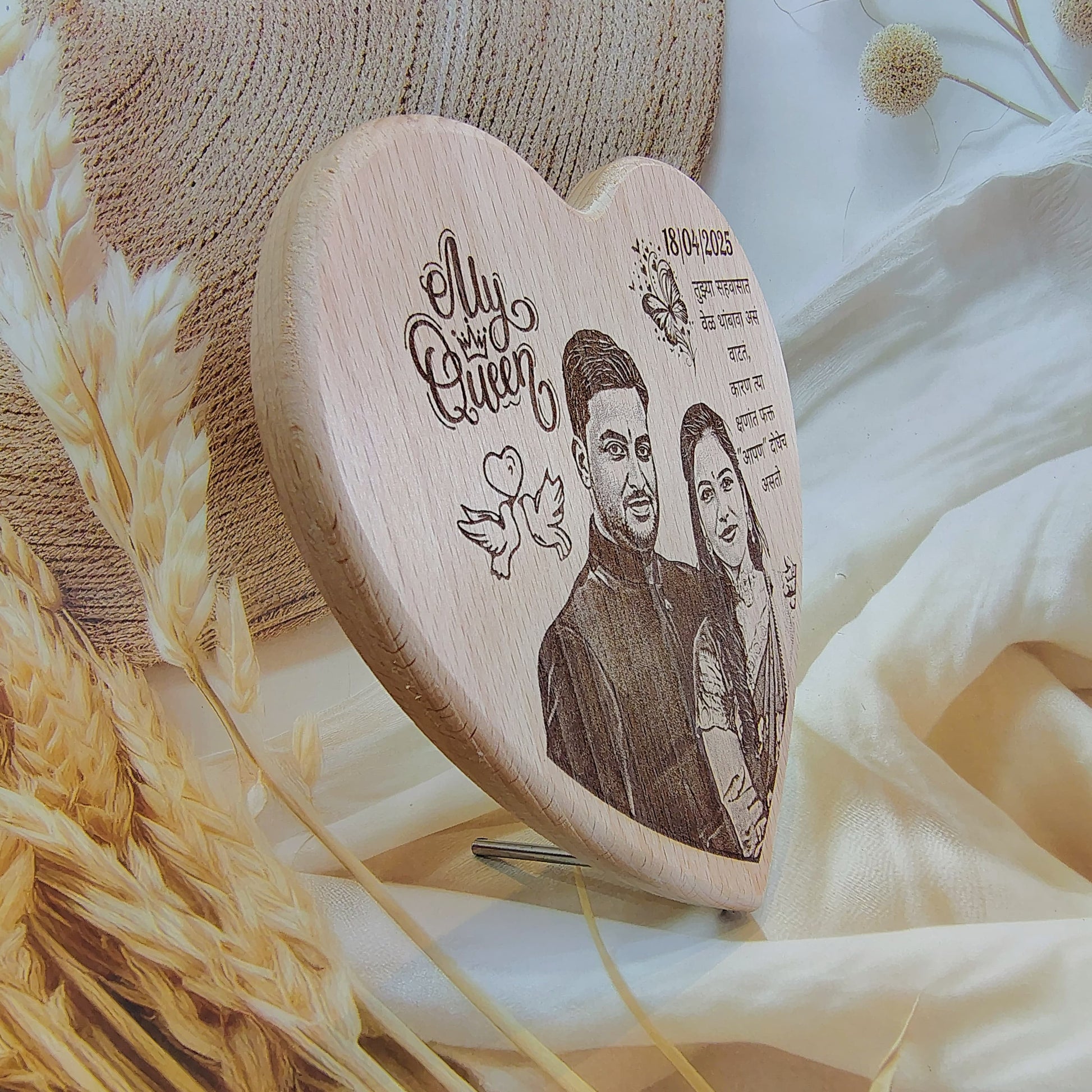 Customised Heart Shape Engraved Wooden photo Frame