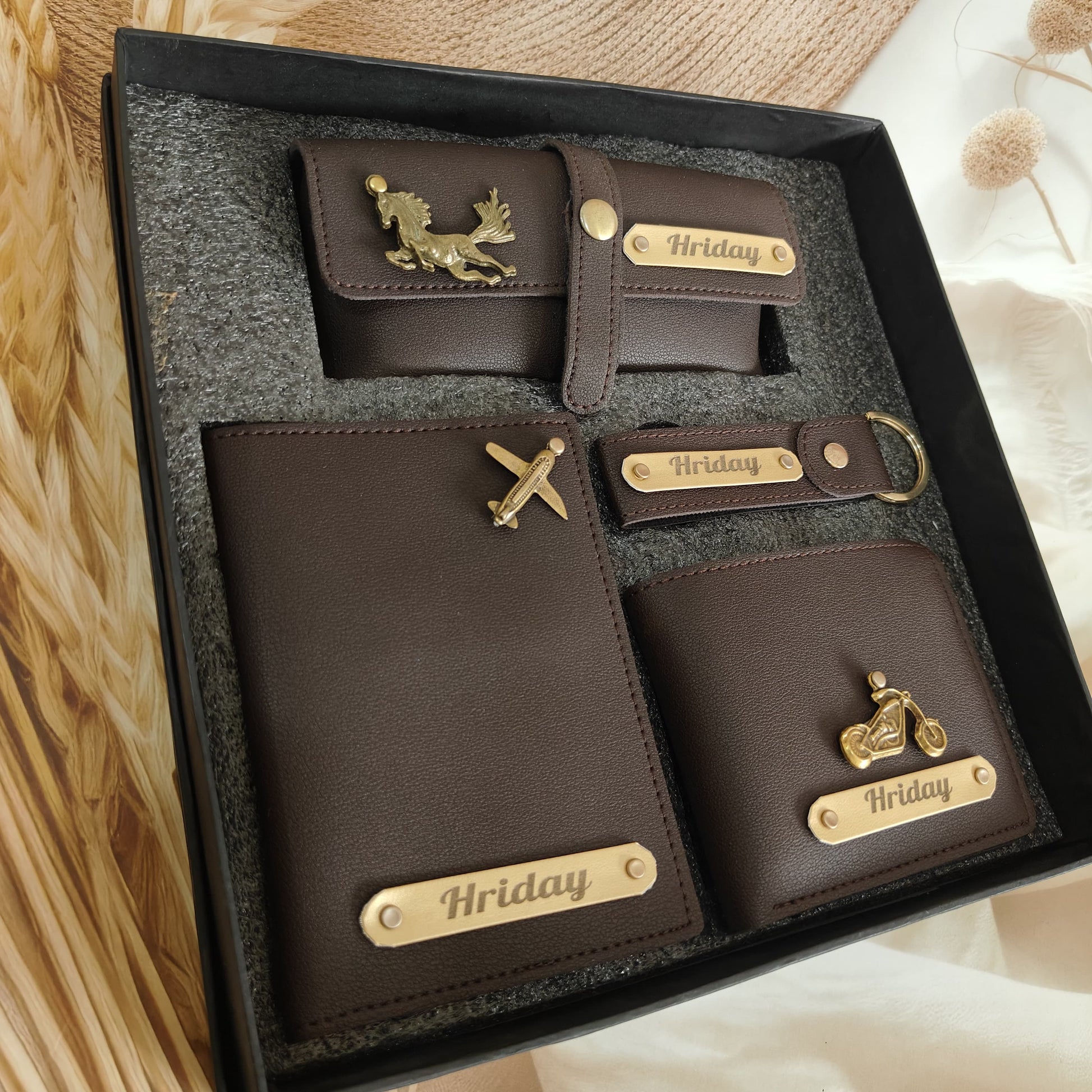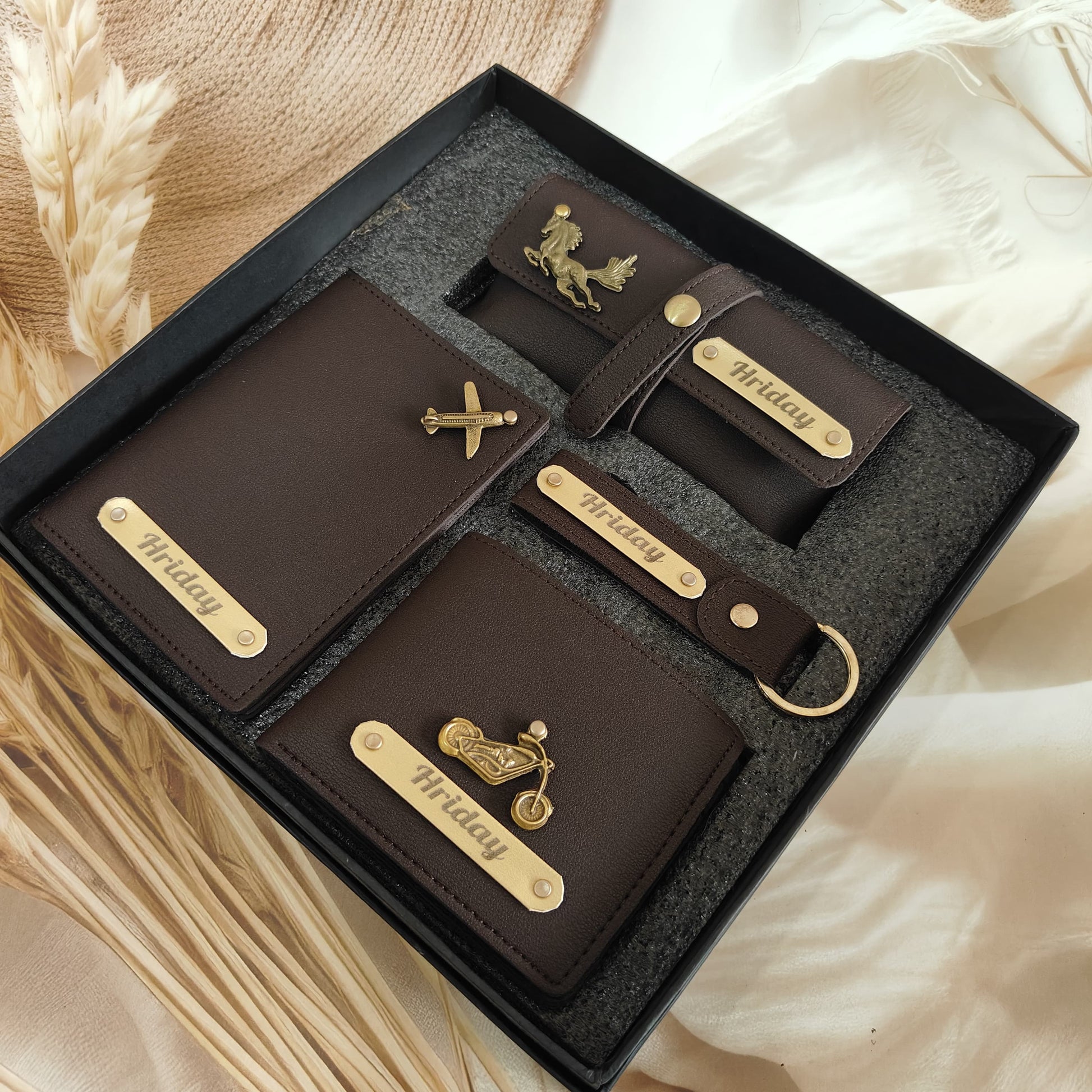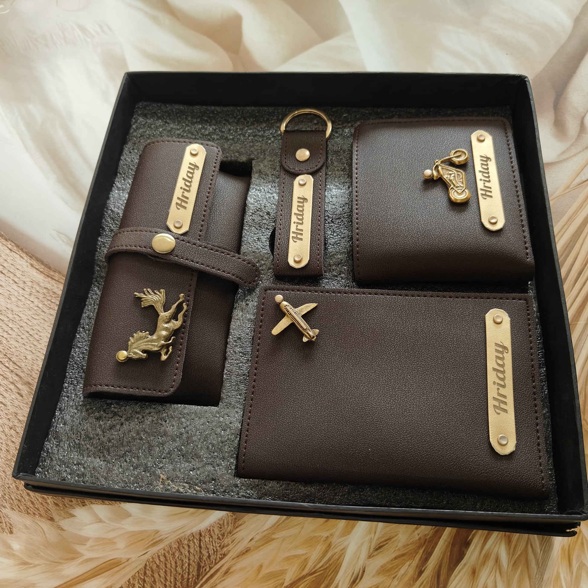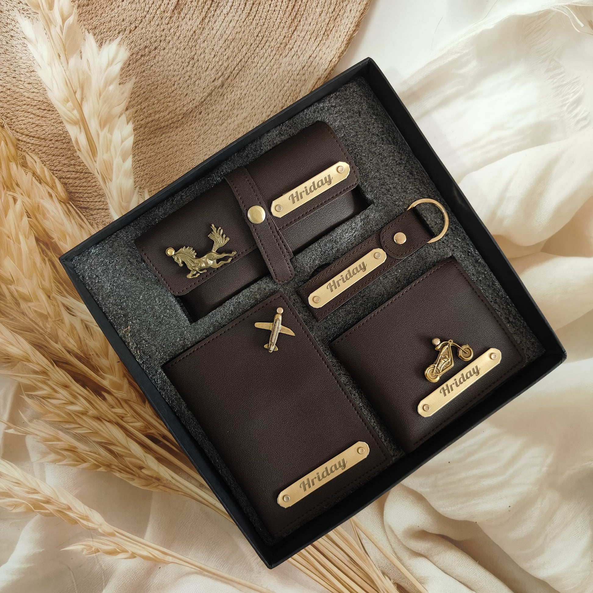 Personalised Premium Leather Imported Men’s Wallet,Keychain, Passport Cover & Eyewear Case | Customised Gift Combo