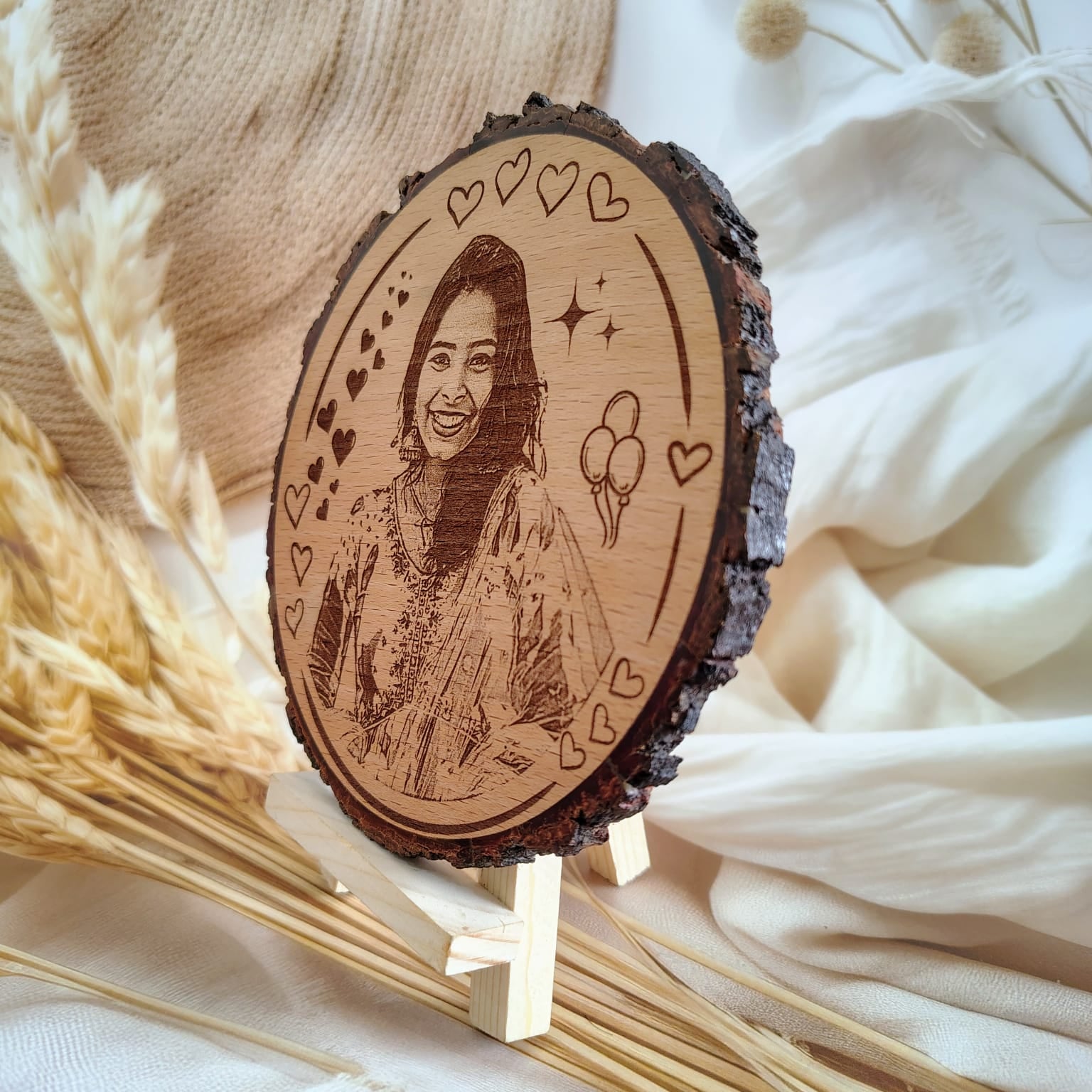 Make your moments tangible with a custom engraved wooden slice—choose your size, add your text or photo, and receive a uniquely personal frame from Giftairs. Order today to create a meaningful keepsake that’s ready to display or gift.